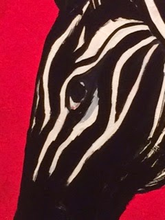 Detalle de una obra, la mirada de la cebra no le tiene nada que envidiar a la de La Gioconda.